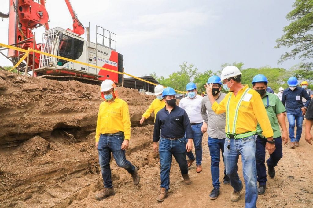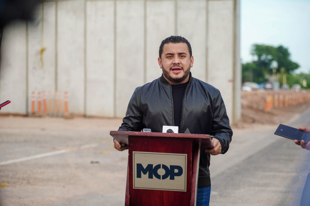 El ministro de Obras Públicas, Romeo Rodríguez, supervisó el avance en los trabajos de construcción del paso a desnivel ubicado entre la autopista a Comalapa y carretera del Litoral, en San Luis Talpa, La Paz, como parte del Plan Maestro de Movilidad y Logística.