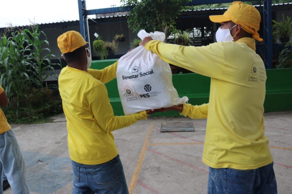 Durante la semana, los privados de libertad han participado en la entrega de paquetes alimentarios en La Libertad, Sonsonate y Ahuachapán.