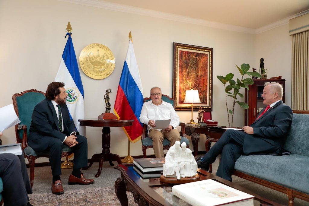 Vicepresidente Ulloa explora oportunidades de cooperación bilateral con RusiaEl Vicepresidente Félix Ulloa, recibió al Embajador Extraordinario y Plenipotenciario de la Federación de Rusia y concurrente en El Salvador, Sr. Mikhail Ledenev, con el propósito de dialogar sobre oportunidades de cooperación bilateral y el fortalecimiento de las relaciones diplomáticas. Durante el encuentro, el Vicepresidente Ulloa compartió los esfuerzos del Gobierno por fortalecer el…