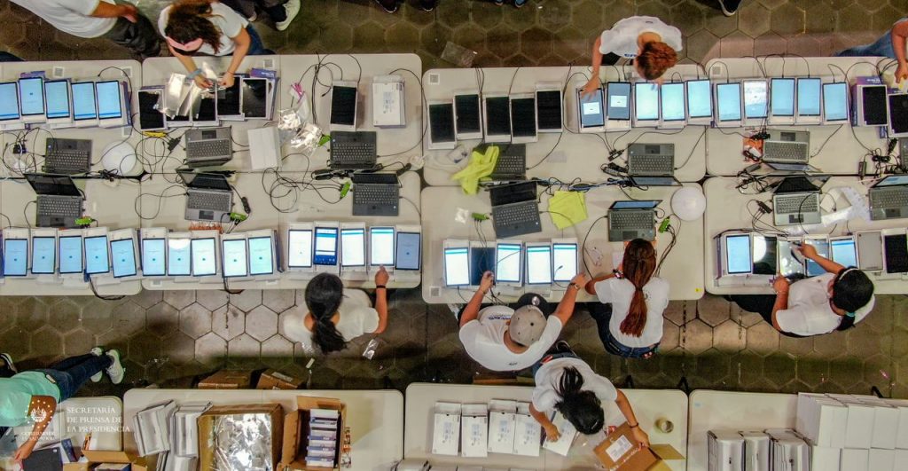 Gobierno del Presidente Nayib Bukele supervisa el ensamblaje de tablets y computadoras que son entregadas a estudiantes salvadoreños